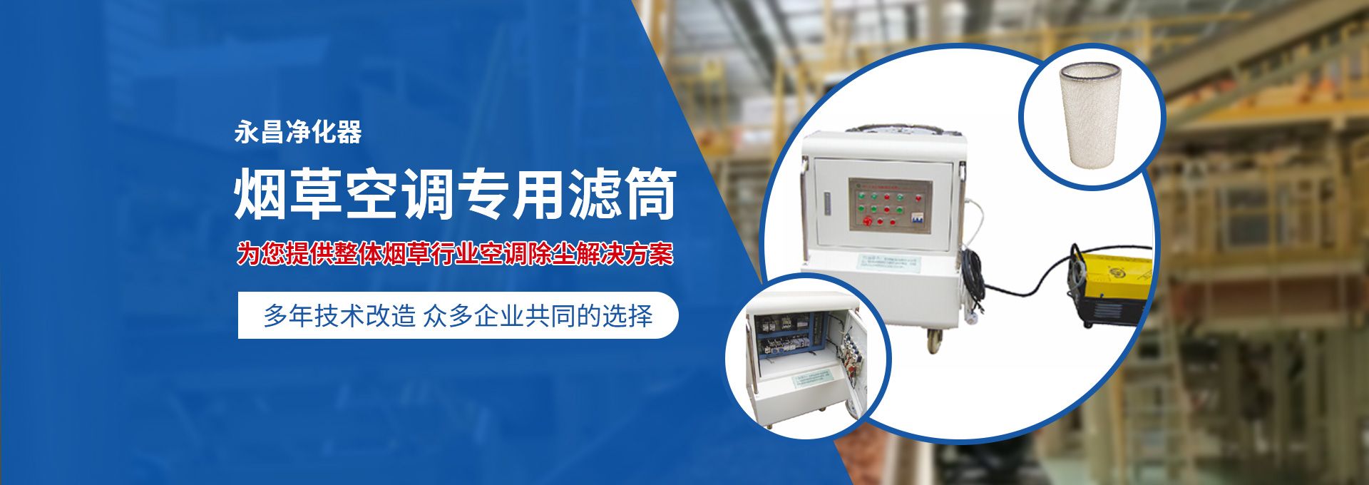 新鄉(xiāng)市永昌凈化器有限公司是生產(chǎn)煙草行業(yè)空調(diào)除塵專用濾筒的企業(yè)。注冊資金1000萬元。已通過ISO9001國際質(zhì)量管理體系認(rèn)證。對產(chǎn)品有嚴(yán)格的管理制度和售后服務(wù)。我公司以誠信、負(fù)責(zé)、守信譽(yù)、重質(zhì)量的精神所生產(chǎn)的產(chǎn)品,近幾年來在煙草行業(yè)受到廣泛應(yīng)用,并受到用戶的一致好評?! 囊痪啪潘哪暌詠頌闊煆S的空調(diào)設(shè)備服務(wù)。十幾年來,我們不斷走出去請進(jìn)來學(xué)習(xí)新技術(shù)。定期到用戶那里咨詢情況:互相交流,認(rèn)真聽取寶貴意見,不斷提高產(chǎn)品質(zhì)量。從經(jīng)濟(jì)和安全,方便的角度出發(fā),根據(jù)煙廠濕度大的生產(chǎn)環(huán)境和濾筒收集到的含酸堿、氧化劑的粉塵。在空調(diào)箱工作狀態(tài)下我們頂著巨大的風(fēng)壓危險在箱內(nèi)停留了幾分鐘,認(rèn)真查看濾筒工作情況,發(fā)現(xiàn)濾筒有并死狀態(tài),造成濾筒不過濾、不過風(fēng)、壓差高的現(xiàn)象。經(jīng)幾十次試驗分析,在標(biāo)本兼治的原則下,有針對性的解決了這一問題?! ∥夜踞槍煆S制絲、卷接包、混絲間、儲絲房、冷卻床、梗膨化等不同的生產(chǎn)環(huán)境,